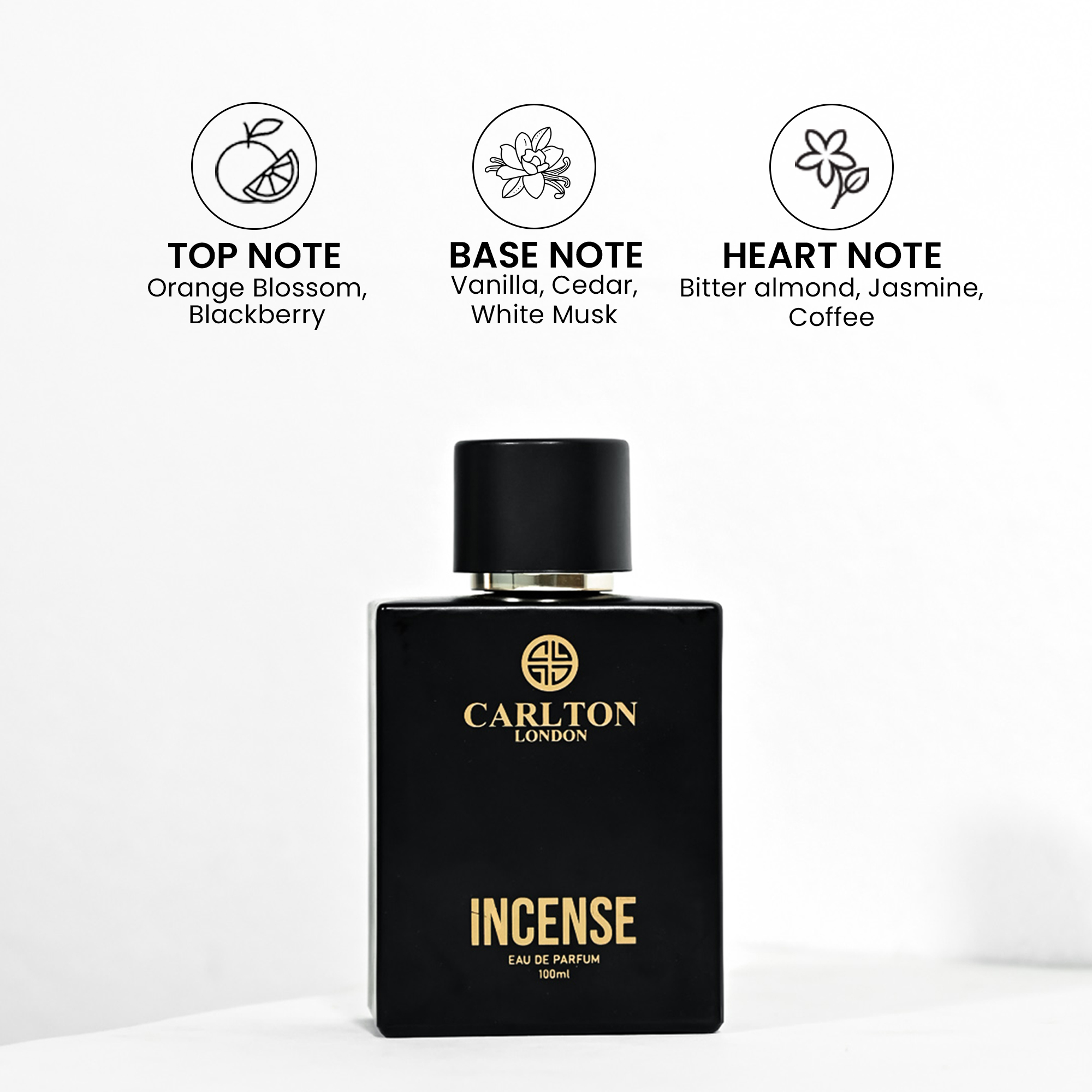 Carlton London Incense Eau de Parfum (100ml): A treasurable musky-woody Eau de Parfum, with a majestic foliage of contemporary orange and blackberry at the top and rich spirals of bitter almond, jasmine and coffee in the heart. A signature note of cedar and white musk forms an exquisite union with vanilla in the base, deepening the scent trail and creating an undeniable aura for lovers of five-star decadence. Incense is an elegant fragrance where the woods express themselves in all of their splendor. Where cedar, blackberry and coffee leave an unforgettable mark.