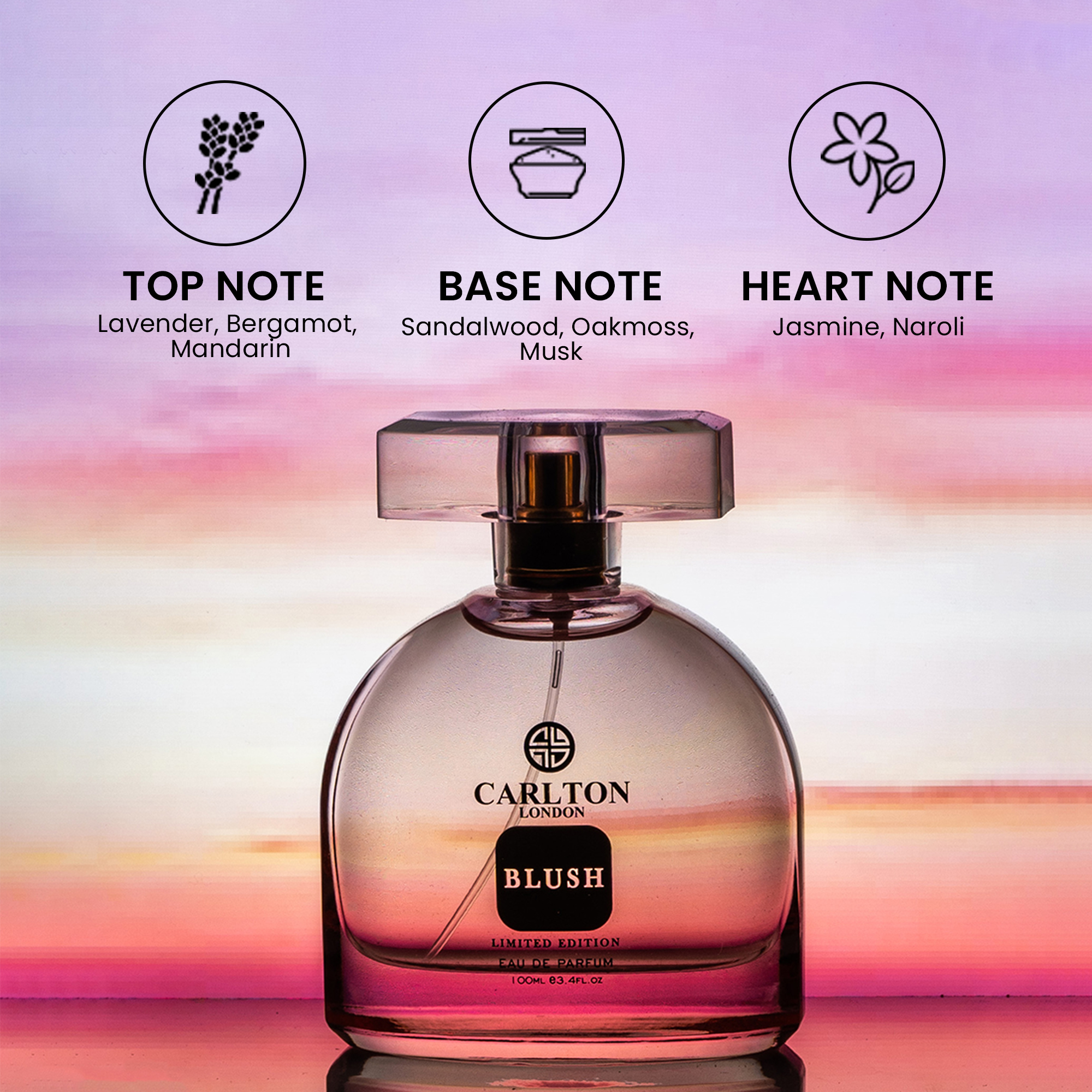 Blush women EDP 100ml - A Midsummer Night's Dream - efflorescent and magical mellow A bold burst of fresh and floral scent where bergamot and lavender fuse with mandarin atop a floral essence of Jasmine and Sandalwood. The heart blooms with a floral bouquet, fruity nuances, traces of sensual oakmoss and precious musk that translate the attraction and power of a beautiful love story about to unfold. Top Notes: Lavender, Bergamot, Mandarin